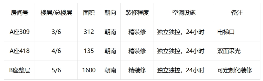 园区均为精装修办公房源,提供拎包入住、全功能办公的硬件配套,满足创业团队办公孵化的全方位创业需求。户型面积可根据企业办公需求,300㎡—2000㎡自由进行组合,B座整层精装房源,可满足大型企业总部办公需求。